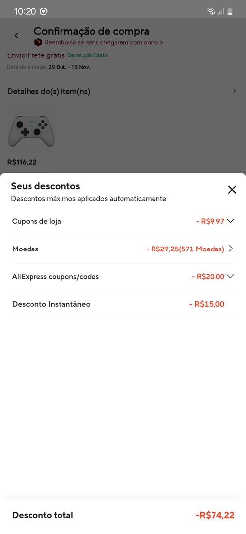 *tem cupom do vendedor que baixa mais ainda o valor, e olha que o valor de 86 ainda está sem o desconto do gpay pq já tinha usado antes