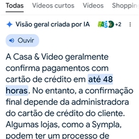 Uma compra minha aprovou o pagamento hoje e a outra cancelaram, falaram que o motivo pode ser estoque ou a administradora do cartão que não aprovou.