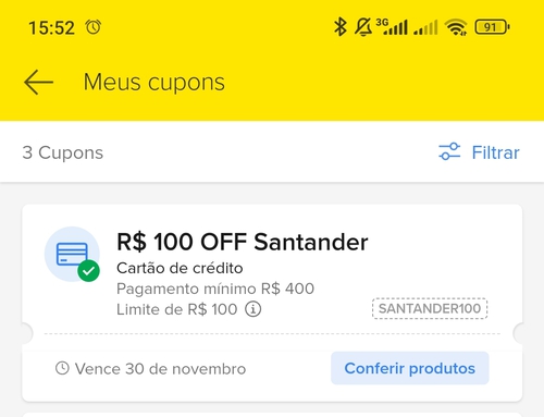 Peguei os 2 cupons do Santander 🥳❣️