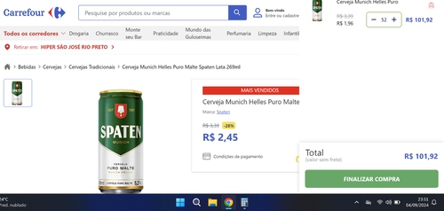 Tinha esquecido essa promoção no carrinho, fui ver outra de vinho e acabei comprando 48 latas por 1.74 cada com retirada no mercado!
