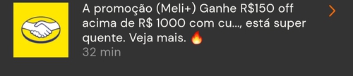 A notificação dizendo que eu ia ganhar 150 com o ku