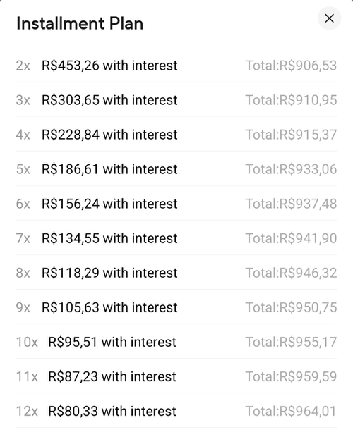 Não aparece opção de 12x sem juros aqui