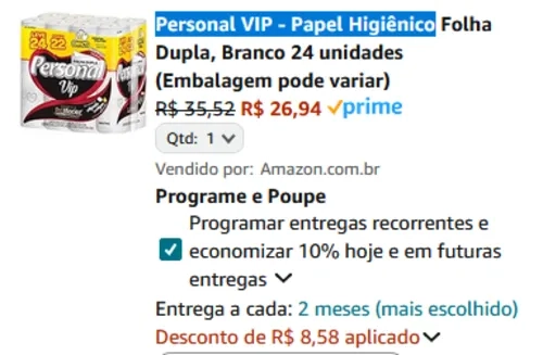 O de 16 rolos tá saindo R$1,35 cada rolo na recorrência.