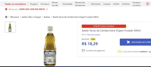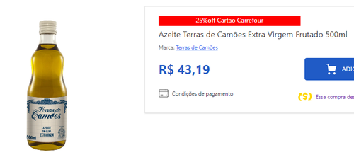 com cartão carrefour tem 25% de desconto, aqui no nordeste tá saindo por R$ 25 cada. se fosse os R$ 13 comprava na hora kkkkk, o azeite é bom, já comprei dele e usei para temperar pratos, fazer salada, vinagrete, e gostei muito.