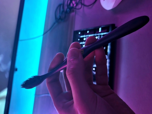 Uso ela tanto no serviço quanto em casa escova boa esfrega bem, não penetra frestas dos dentes igual a Colgate 360º Carvão, trabalho em CD de Farmácia e sai muito ela e deu vontade de testar
