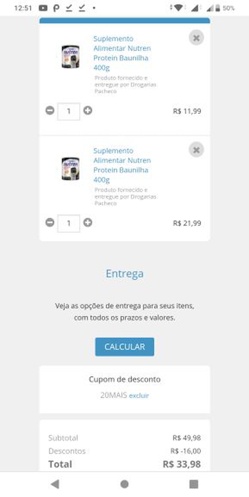 Pra mim frete 3,00 zona oeste de SPInfelizmente não tem entrega nem unidade para retirada em São Paulo, Capital. Nem tem a promoção pra Drogaria São Paulo