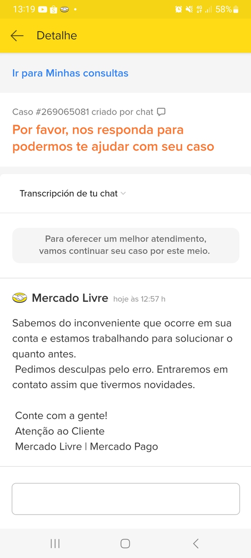 Posicionamento do Mercado Livre pra quem não conseguiu ativar: