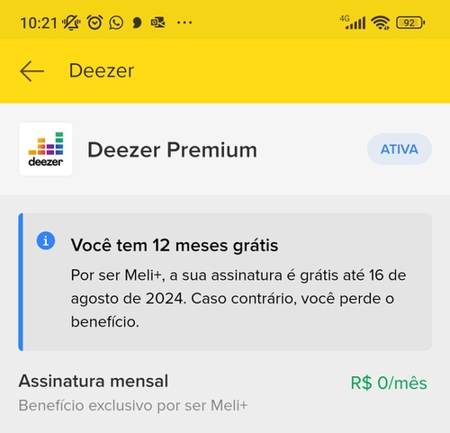 Já era assinante do ML e também deezer com o desconto oferecido na plataforma. Aqui já converteu automaticamente e não pagarei o Deezer por um ano... show de bola.