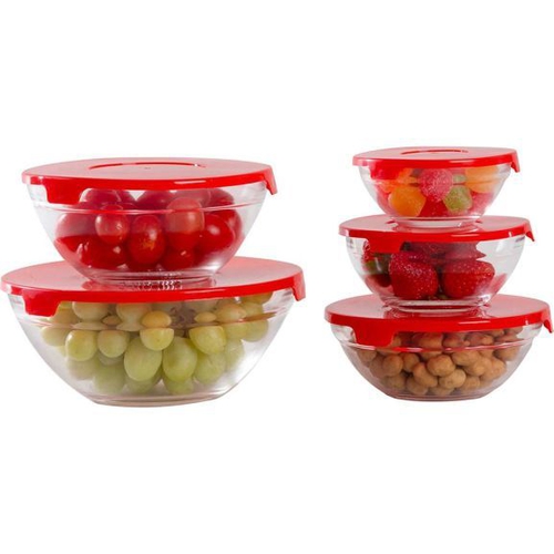 [1ª compra/9 meses] Conjunto de Potes de Vidro 5 Peças Vermelho ou Verde- R$5