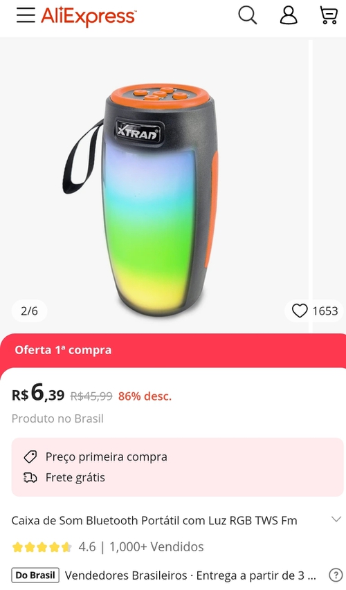 [1°Compra/BR]Caixa de Som Bluetooth RGB 8w