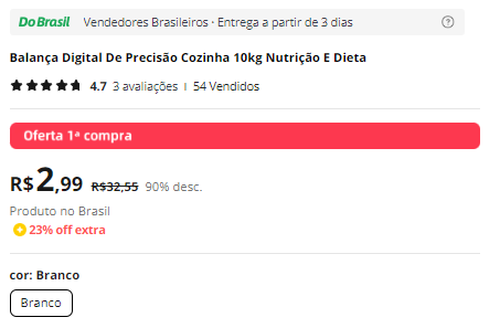 [1ªCompra/DoBrasil] Balança Digital De Precisão Cozinha 10kg Nutrição E Dieta