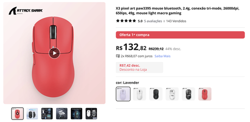 [1ª Compra] Mouse Gamer Wireless Attack Shark X3 49gramas