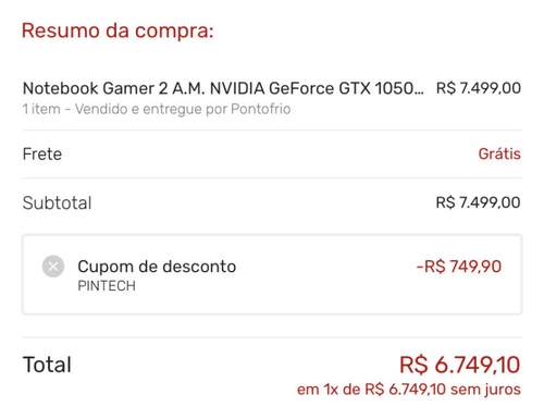 Usuários selecionados. Válido para produtos vendidos e entregues pelo Ponto Frio