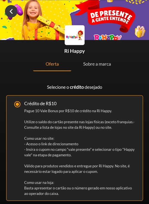[10 pontos Vale Bonus] Ganhe R$ 10 em créditos na Ri Happy