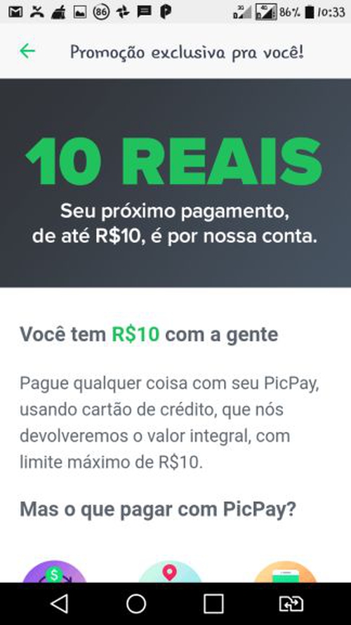10 reais para qualquer pagamento no picpay( apenas para usuarios selecionados )