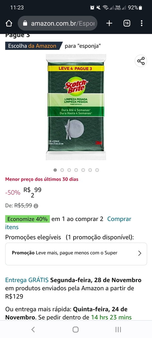 Peguei mais 10, aqui nos mercados está R$ 5.49 cada pacote. Esponja até 2024.