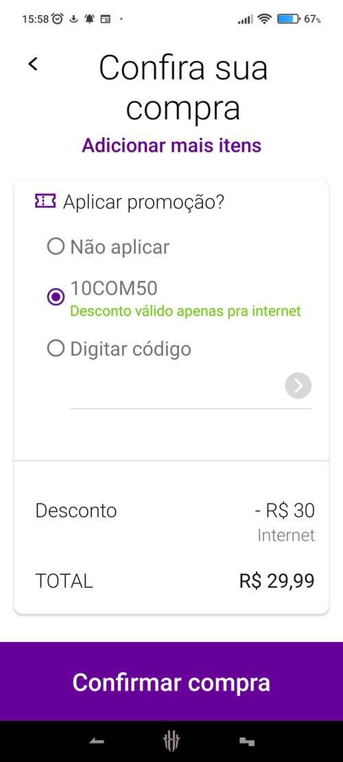 Valeu! O desconto só aparece no carrinho, então rola o medo de cobrarem R$60, mas aí é só selecionar o cupom dentro do carrinho e dá tudo certo!