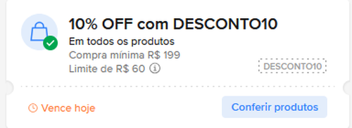 10% OFF em R$199, limitado a R$60 com cupom Mercado Livre