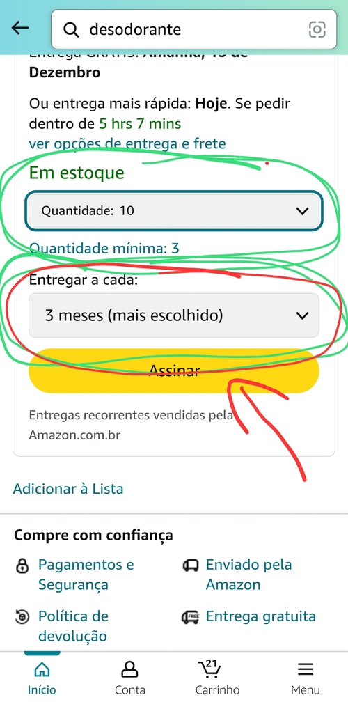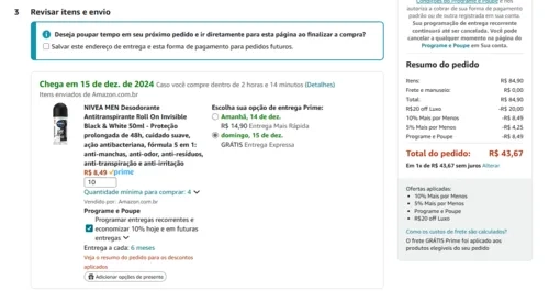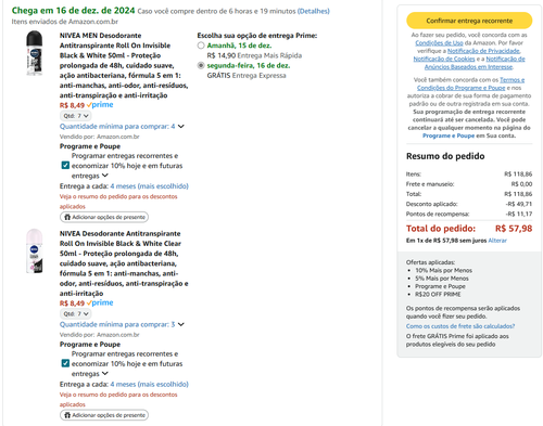 Aqui vai outro print, mas este não usei o cupom de 20 pois gastei todos que peguei neste mês, foram uns 4 de missões e promoções.