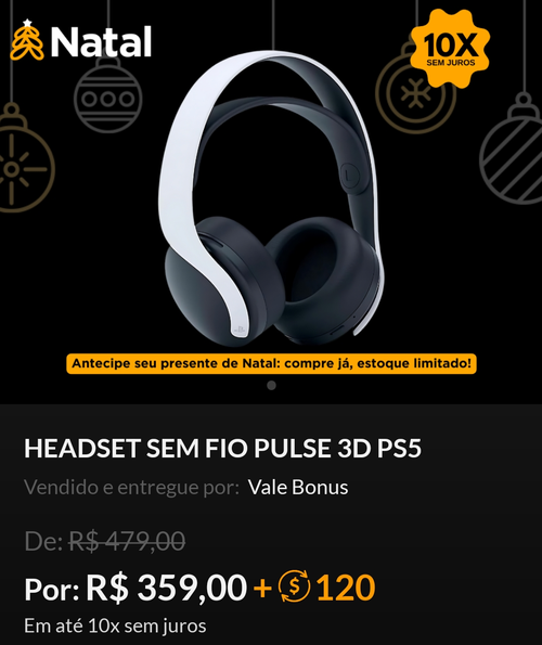 Troque 120 pontos + R$ 359 em até 10x sem juros pelo headset