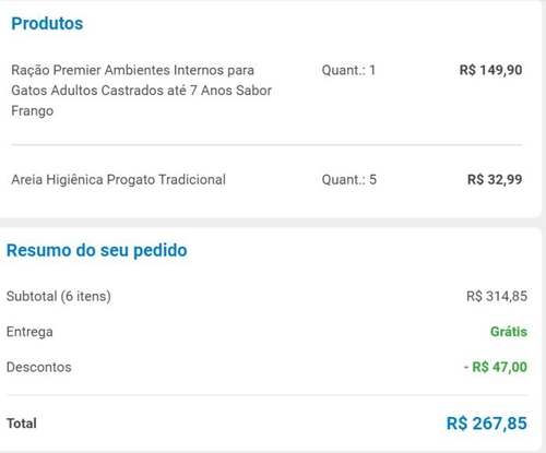 Só adicionar os produtos no carrinho. Bom pra quem tem vários gatos, como eu (:IPromoções Pelando