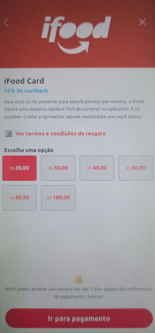 Comprei mas ainda não apareceu no extrato. Mas como informa no rodapé tem 7 dia sora cancelar a compra é só não ativar o código no app do Ifood