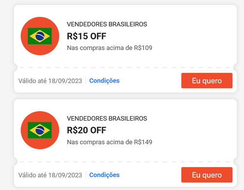 15 OFF em compras acima de 109 vendedores Brasileiros - com cupom shopee