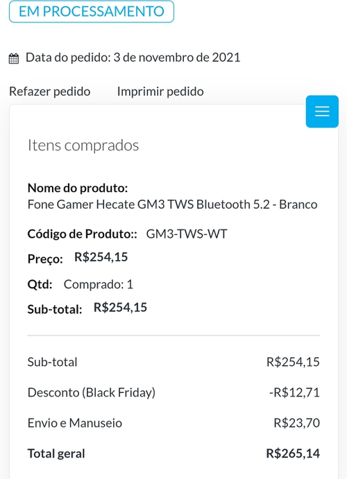 Comprei no Ali um Headset, W820BN por 247,00 com frete grátis no dia das crianças.