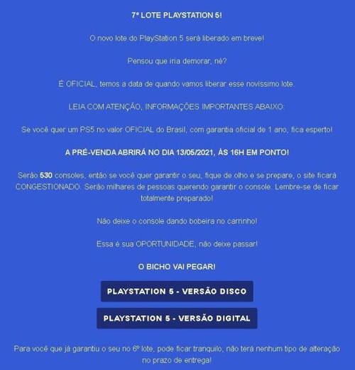 Boa sorte a todos! espero que consigam seu ps5