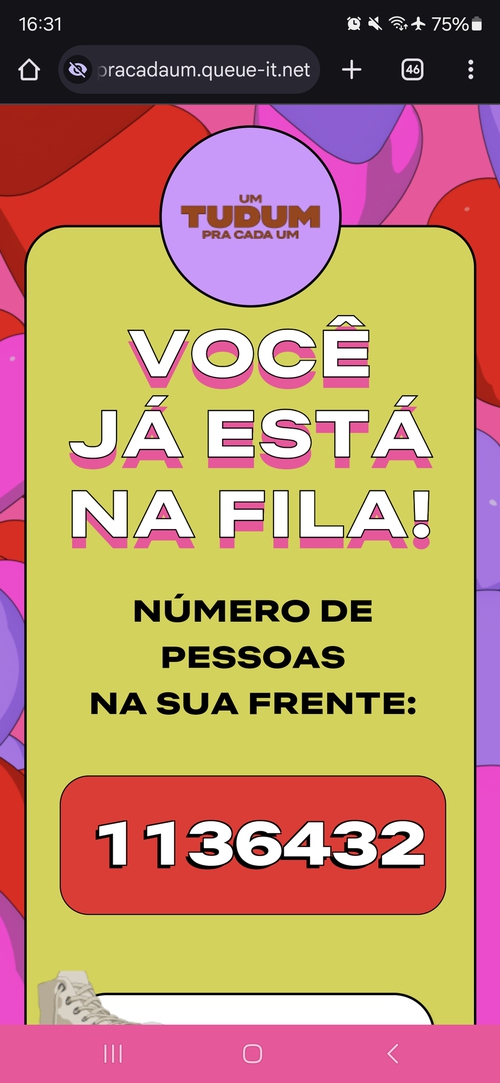 Começou a fila e não apareceu minha colocação, tive que att a página fui pra la de 1 milhão
