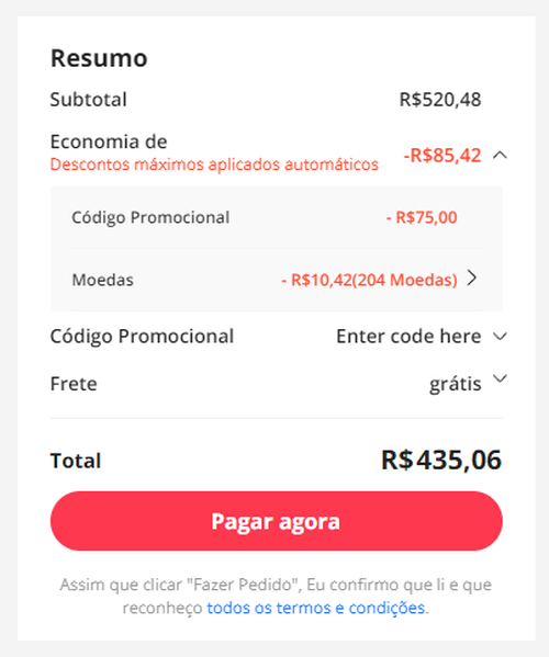 Resgate suas moedas e adicione o cupom