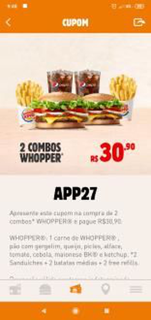 São os cupons que sempre tem no APP, mas cuidado que tem unidades que não aceitam mais cupons do APP