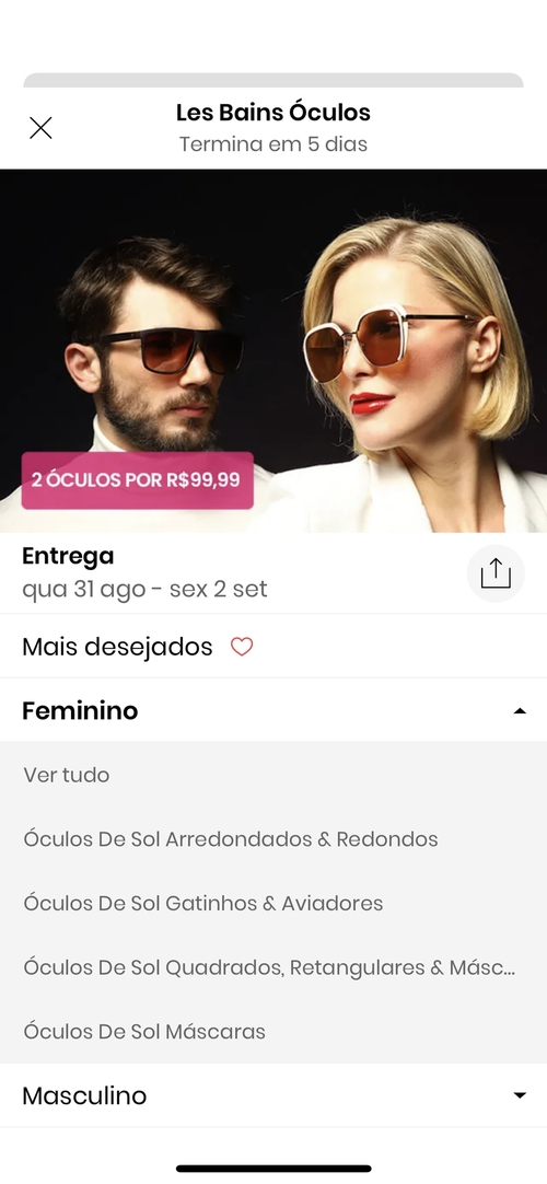 As quantidades são limitadas e a promoção vale pra compra de 2 óculos no mesmo carrinho