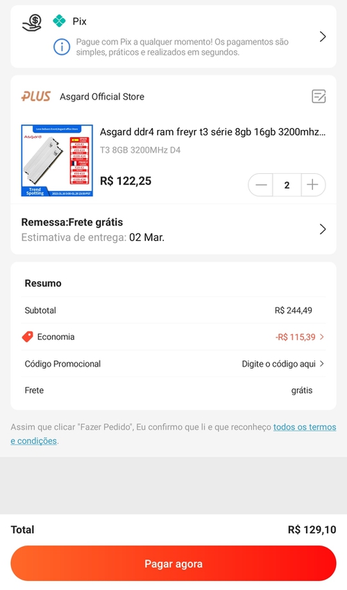 Peguei duas a 129, finalmente peguei um desses cupom de ram