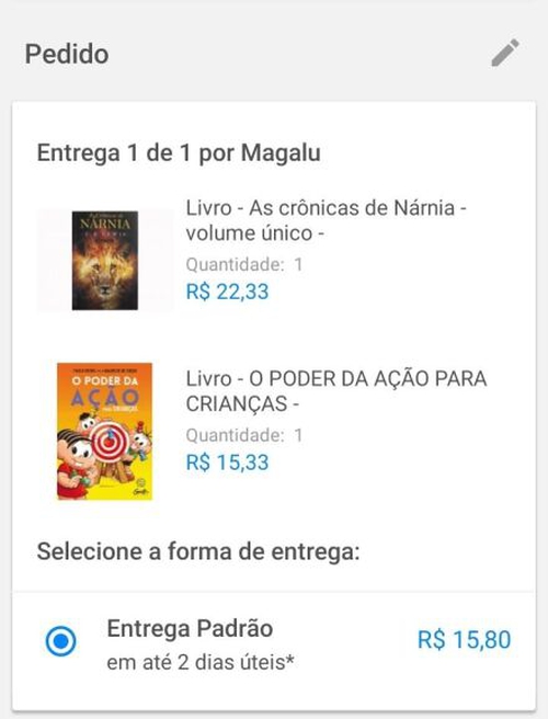 Então adicionem os livros que vocês querem e façam apenas um pedido.