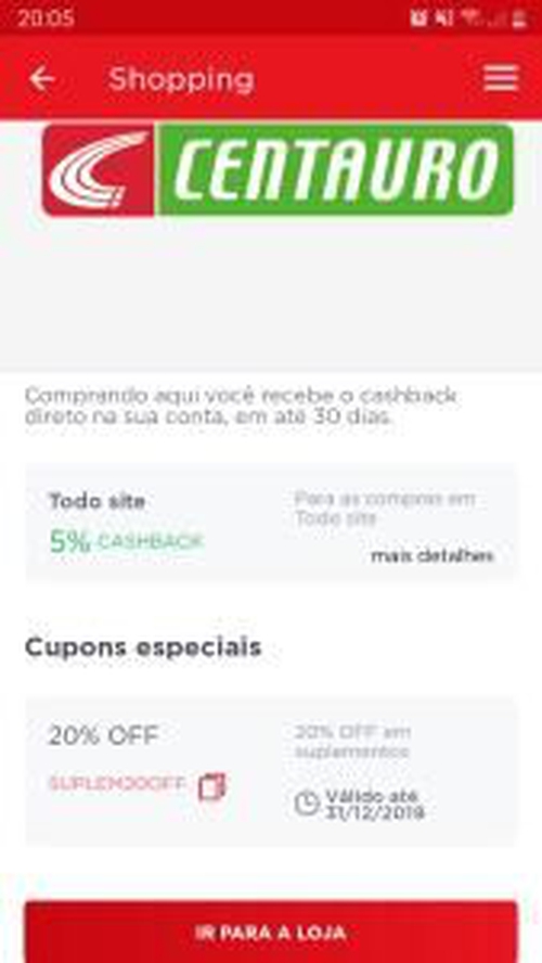 20% de desconto em suplementos na Centauro até 31/12/2019.