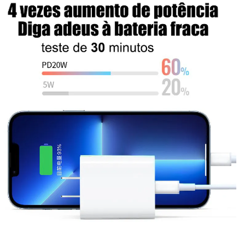 [20w] Carregador USB-C Apple p/ iPhone 11/12/13/14/Pro Max/Mini/XS Max/8 Plus, iPad Air