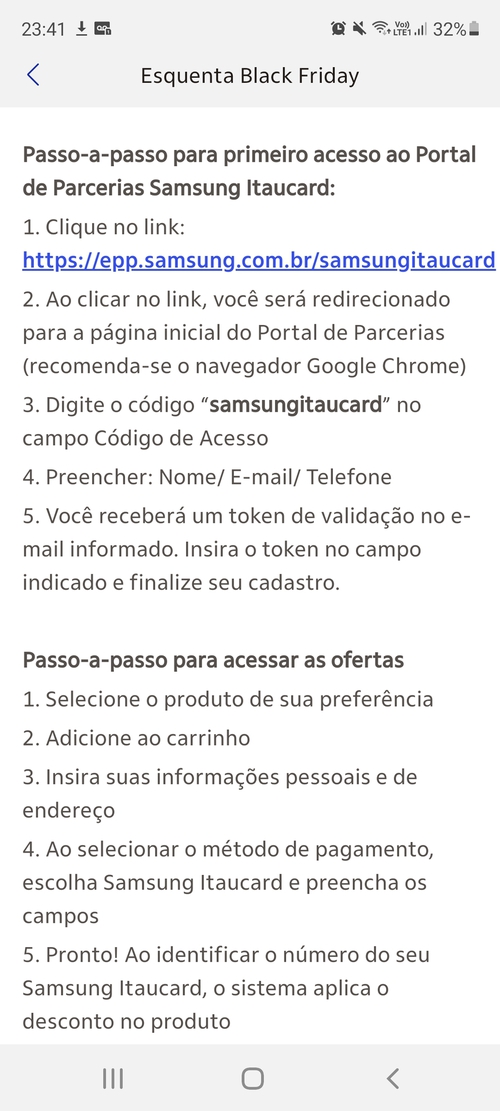 2° - Fazer cadastro utilizando o código SAMSUNGITAUCARD