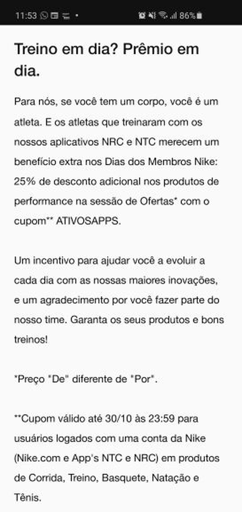 25% de desconto em produtos na seção ofertas - *itens de Corrida, Treino, Basquete, Natação e Tênis