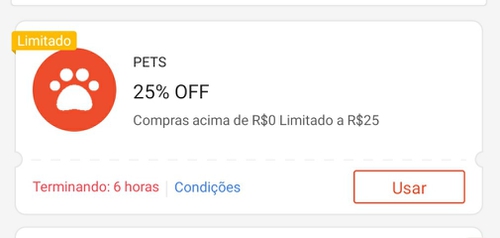 25% Off sem mínimo com limite de R$ 25,00 somente na categoria PET.