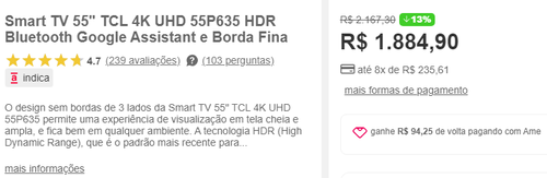94,25 de volta pagando com ame (se nao aparece, procure o produto no shoping ame)