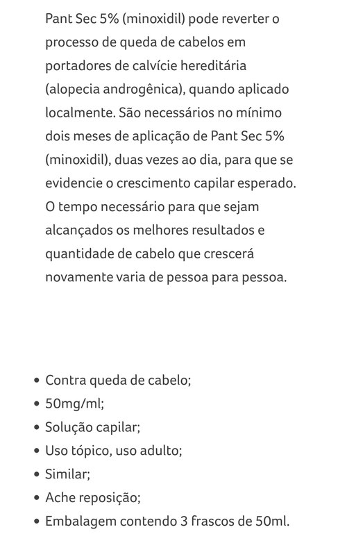 Usava o foligain, que funcionava perfeitamente, crescia e mantinha. Como ficou difícil importar, acabei migrando pra esse, mas em mim não deu efeito não. Passando faz vários meses e nada, continua caindo. Tentei o normal por uns 6 meses e pela coceira migrei pro sec faz mais de 6 meses, nada de resultado aqui. Procurar outra alternativa.