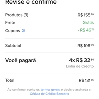 Linha de crédito aqui sempre aparece pra parcelar em no mínimo 3x e com juros absurdo.