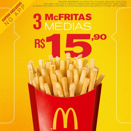 3 McFritas Médias no McDonald's - R$15,90