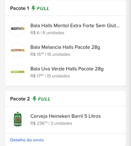 aqui deu com 2 suco trink, 15 halls e 3 barris, saiu por 160 tudo.