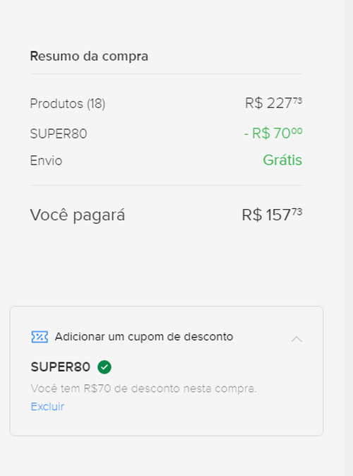 O cupom SUPER70 tá funcionando