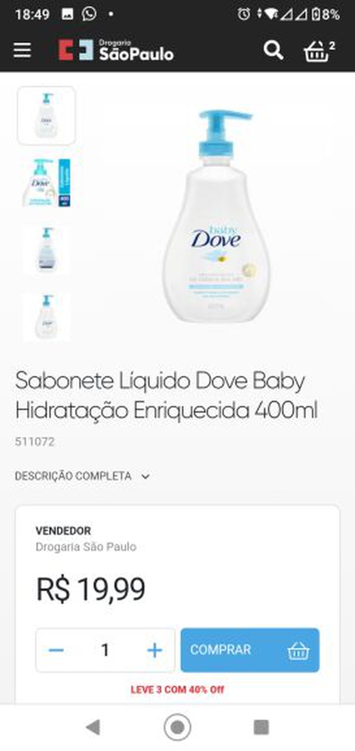 [3 UNIDADES] Sabonete Líquido Dove Baby Hidratação Enriquecida 400ml | R$28