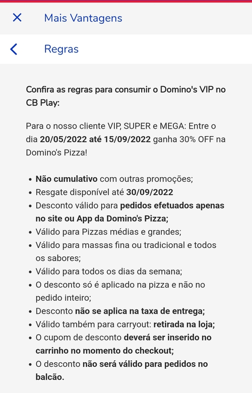 30% OFF na pizza Domino's para Vip's no App com cupom Casas Bahia