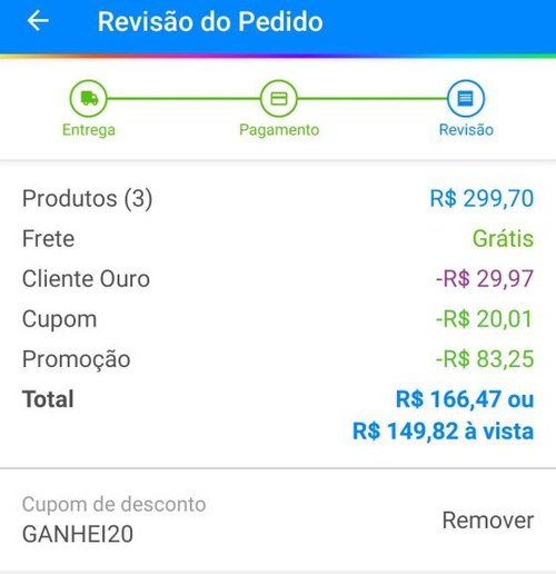 Sugestao o preço tinha q constar 149,82 e o preço de cada um abaixo ( como ja esta). Achei q seria 3 no total de 49,94