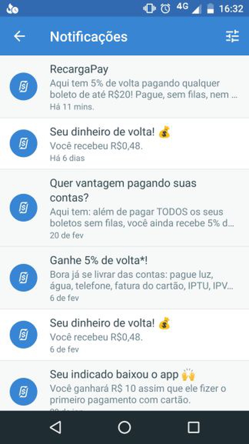 Recebi notificação hoje e consegui pagar e obter vintão de desconto no boleto, e mais R$ 5 na carteira por ser meu 1º boleto pago lá, cupom CONTA. Não me dava bem com os cupons RecargaPay, mas agora o app se redimiu!